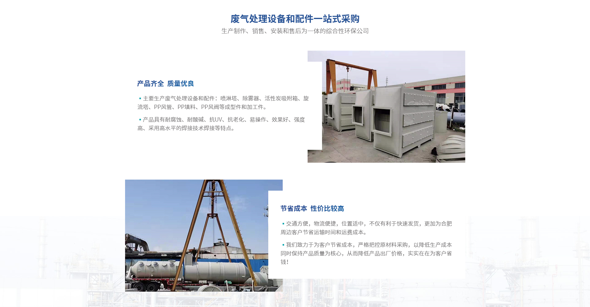 合肥熙誠環(huán)保科技有限公司是熙誠環(huán)保合肥分公司,是一家集產(chǎn)品生產(chǎn)制作、銷售、安裝和售后為一體的綜合性環(huán)保公司。主要生產(chǎn)廢氣處理設(shè)備和配件:噴淋塔、除霧器、活性炭吸附箱、旋流塔、PP風(fēng)管、PP填料、PP風(fēng)閥等成型件和加工件,產(chǎn)品具有耐腐蝕、耐酸堿、抗UV、抗老化、易操作、效果好、強度高、采用高水平的焊接技術(shù)焊接等特點;滿足客戶一站式采購的要求。廣泛應(yīng)用于電子業(yè)、化工業(yè)、醫(yī)藥業(yè)、紡織業(yè)、橡塑業(yè)、汽車業(yè)、...